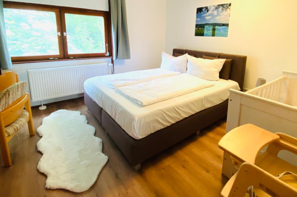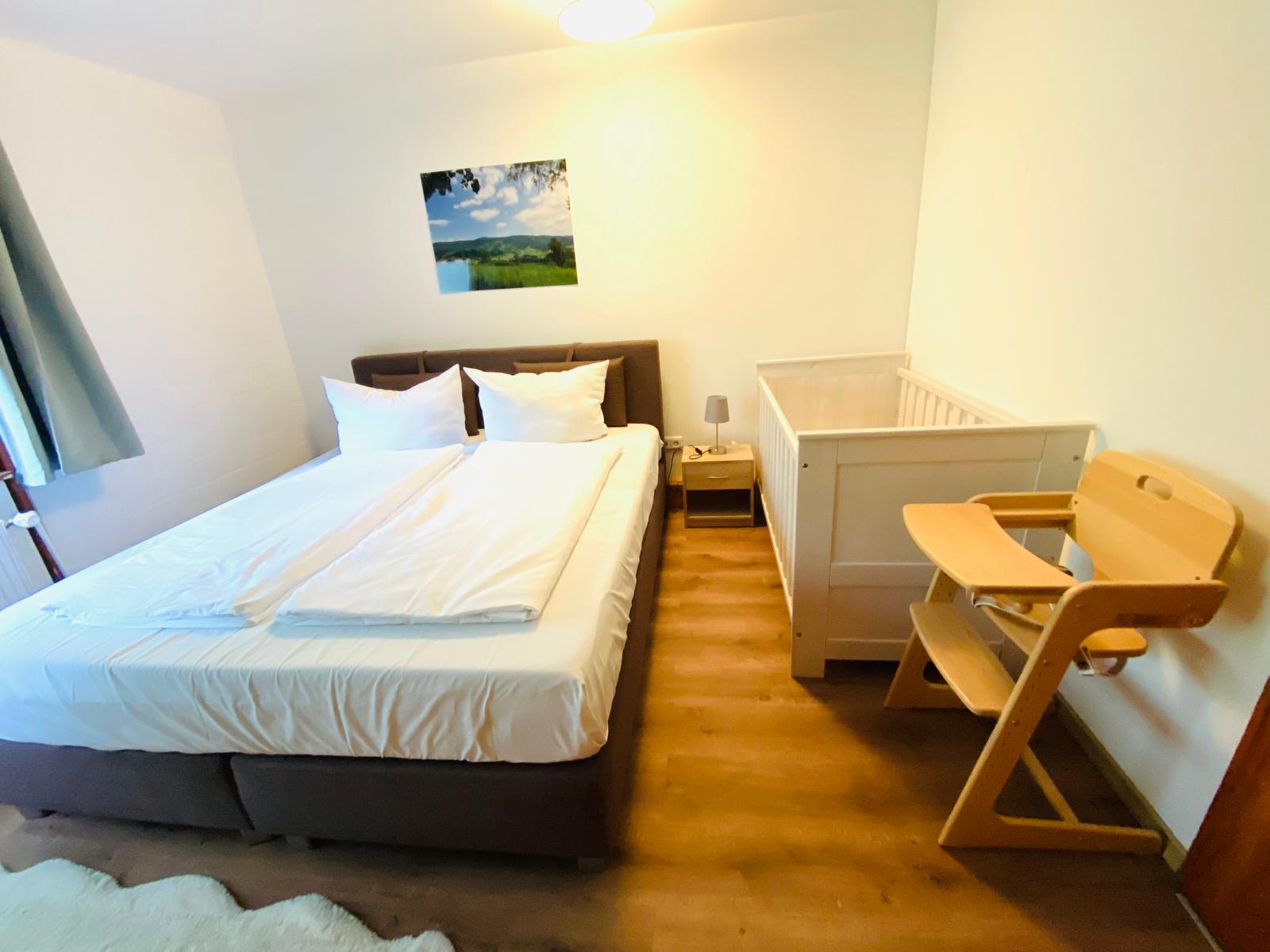 Das zweite gemütliche Schlafzimmer ist zusätzlich mit einem Kinderbett ausgestattet. Es verfügt über einen Fernseher sowie W-LAN.